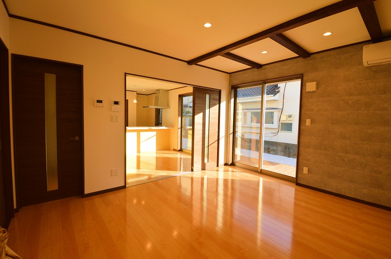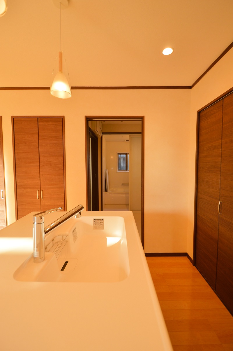 LDK→洗濯機の導線がひと続きとなっております。家事負担を減らします。