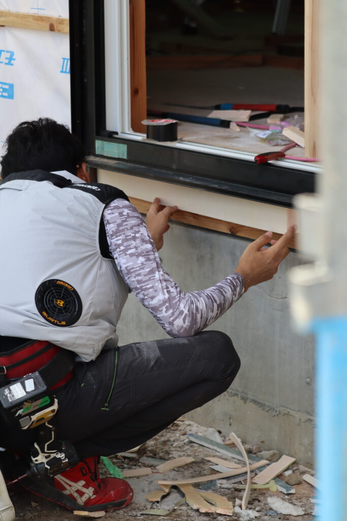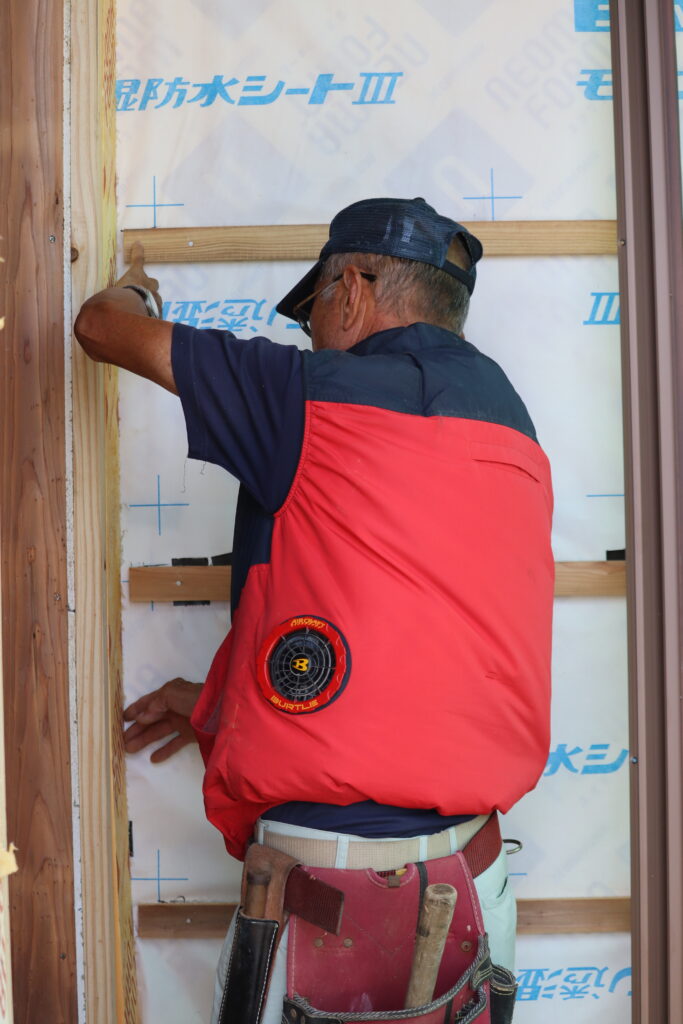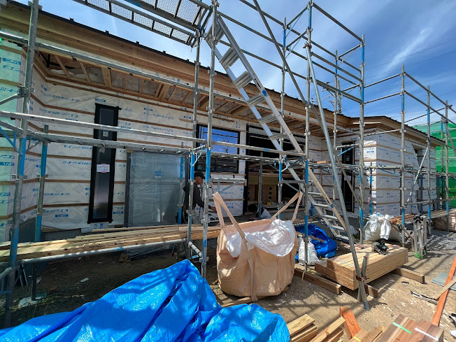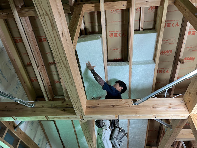 現在、門川町の新築工事現場は断熱材の施工中です。