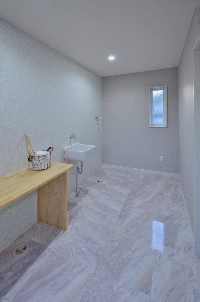 服が汚れていてもそのまま入れるように、ランドリールームにも勝手口を設置。