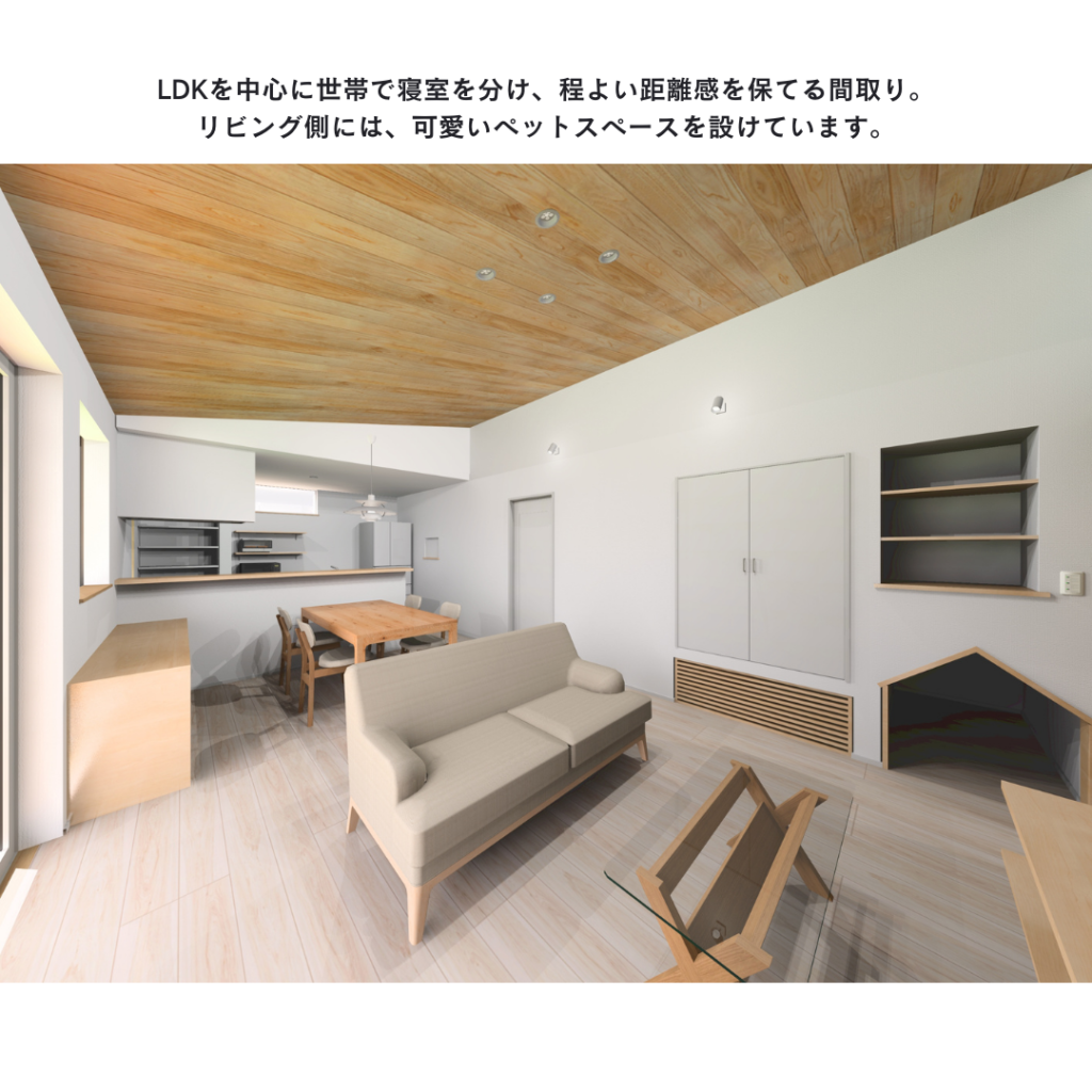 ■LDKを中心に世帯の寝室を分けた間取り
