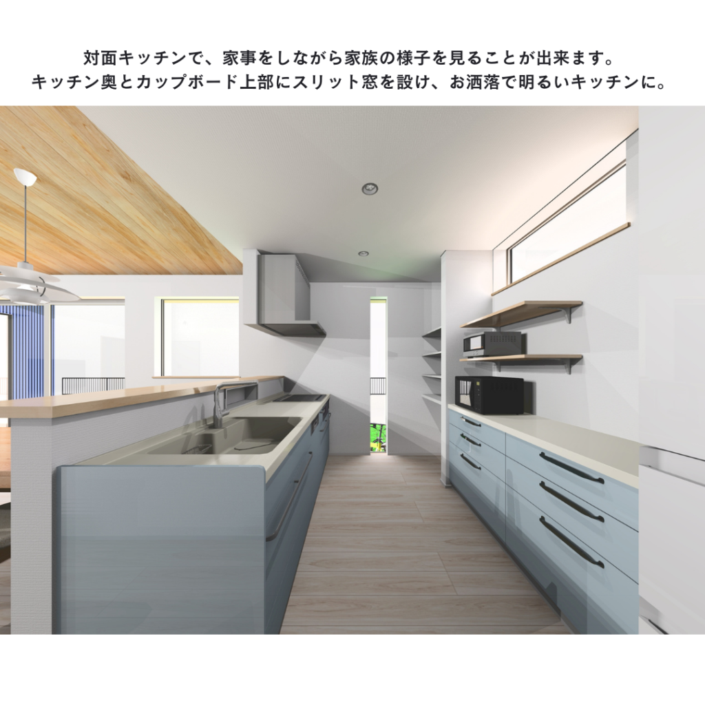 ■スリット窓からの自然光がお洒落な玄関・キッチン